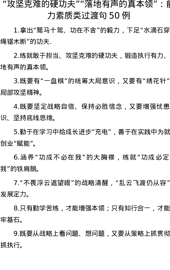 “攻坚克难的硬功夫”“落地有声的真本领”:能力素质类过渡句50例