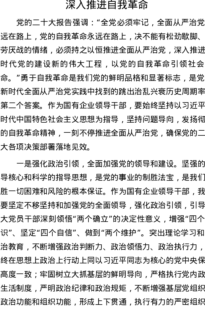 深入推进自我革命