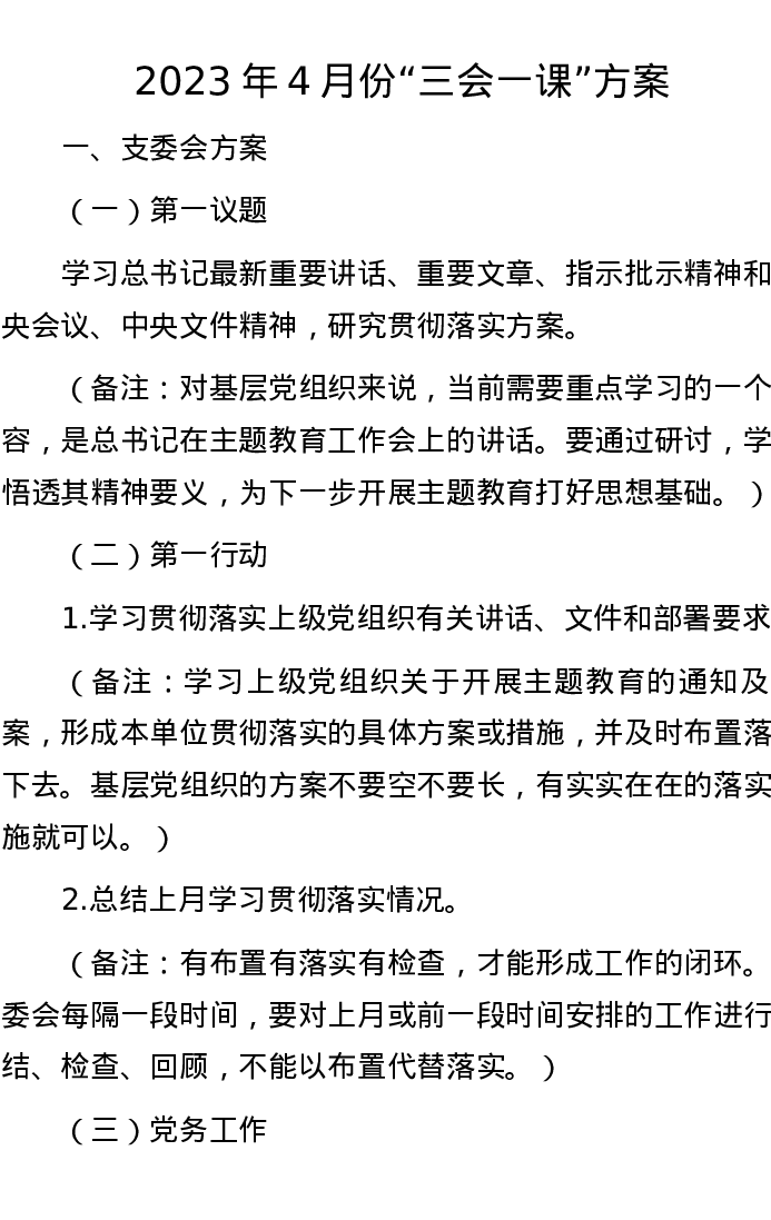 2023年4月份“三会一课”方案