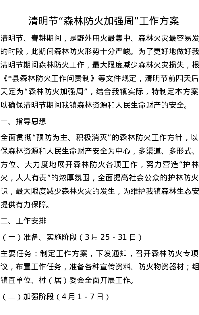 清明节“森林防火加强周”工作方案