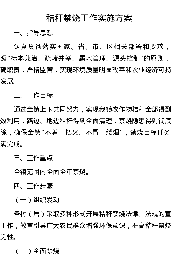 秸秆禁烧工作实施方案