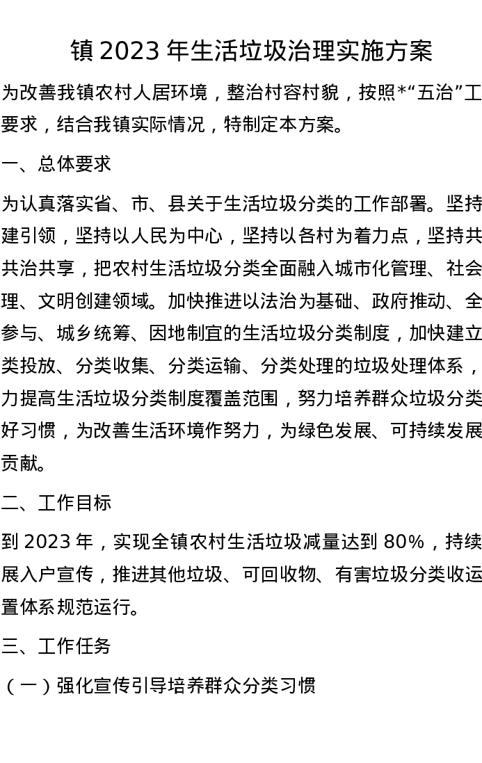 镇2023年生活垃圾治理实施方案