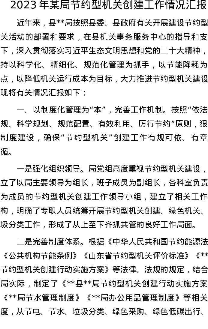 2023年某局节约型机关创建工作情况汇报
