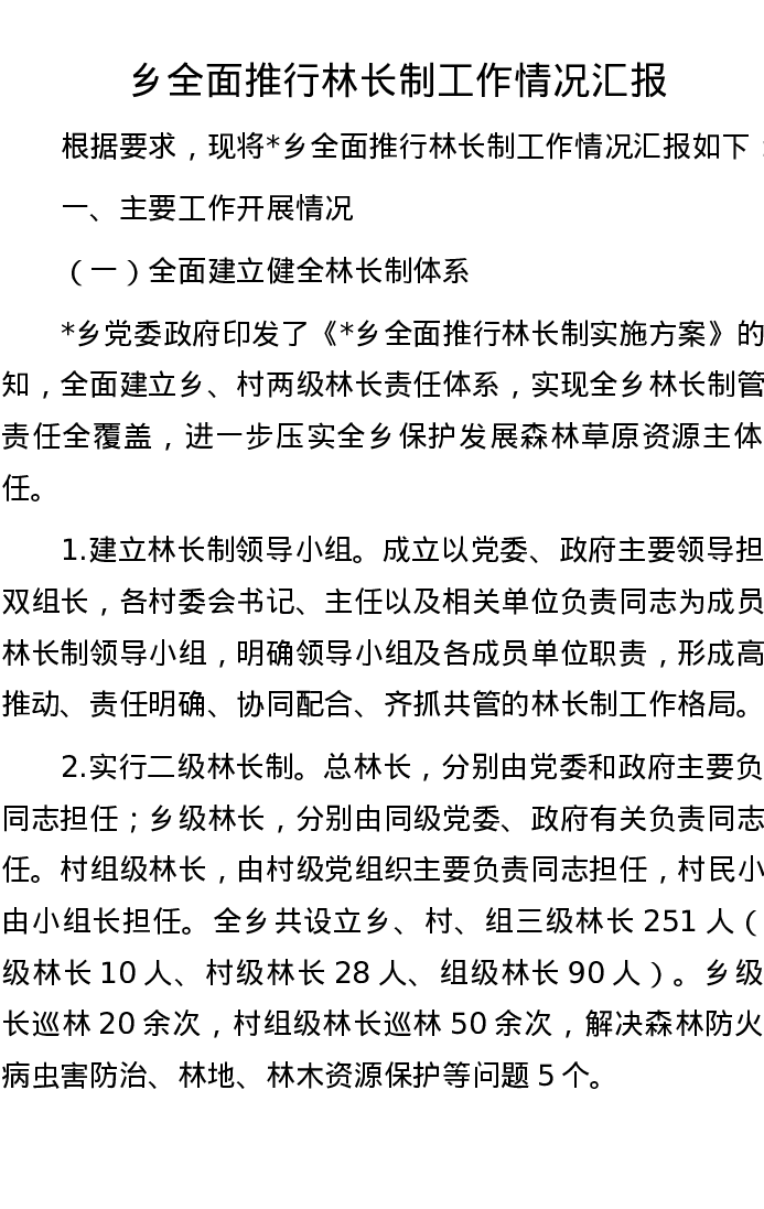 乡全面推行林长制工作情况汇报
