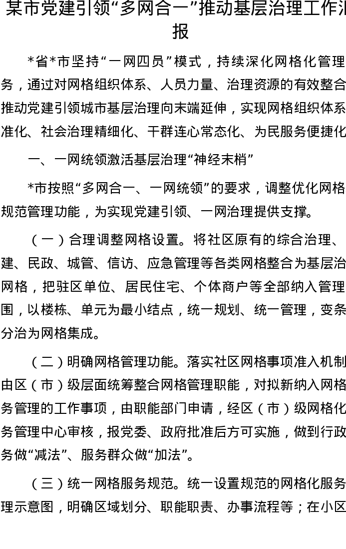 某市党建引领“多网合一”推动基层治理工作汇报