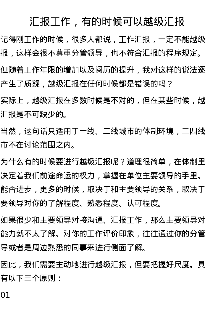 汇报工作,有的时候可以越级汇报