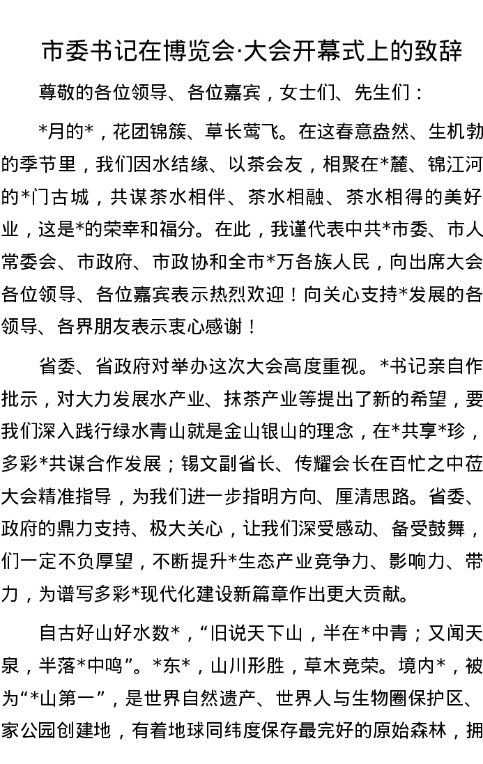 市委书记在博览会·大会开幕式上的致辞