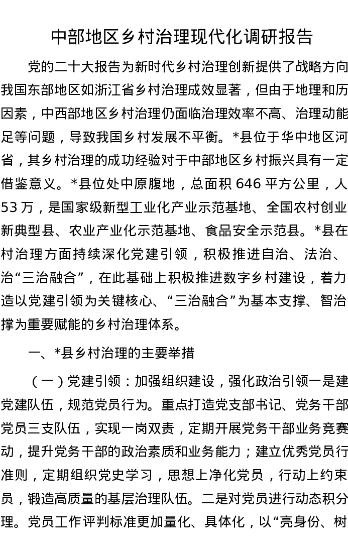 中部地区乡村治理现代化调研报告