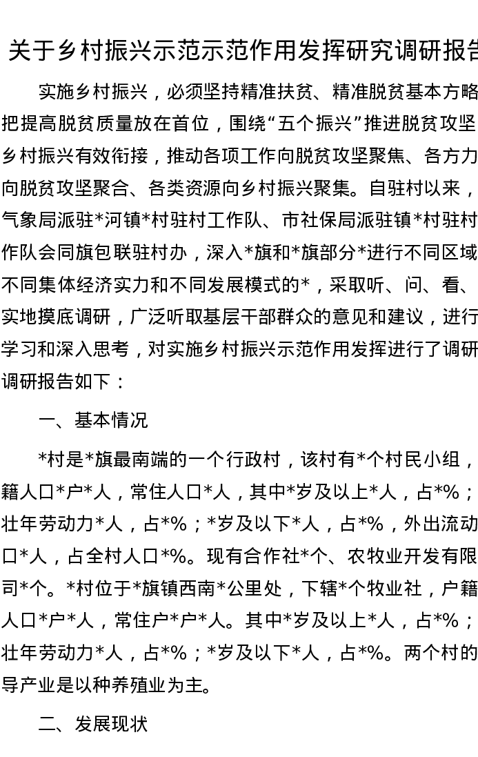 关于乡村振兴示范示范作用发挥研究调研报告