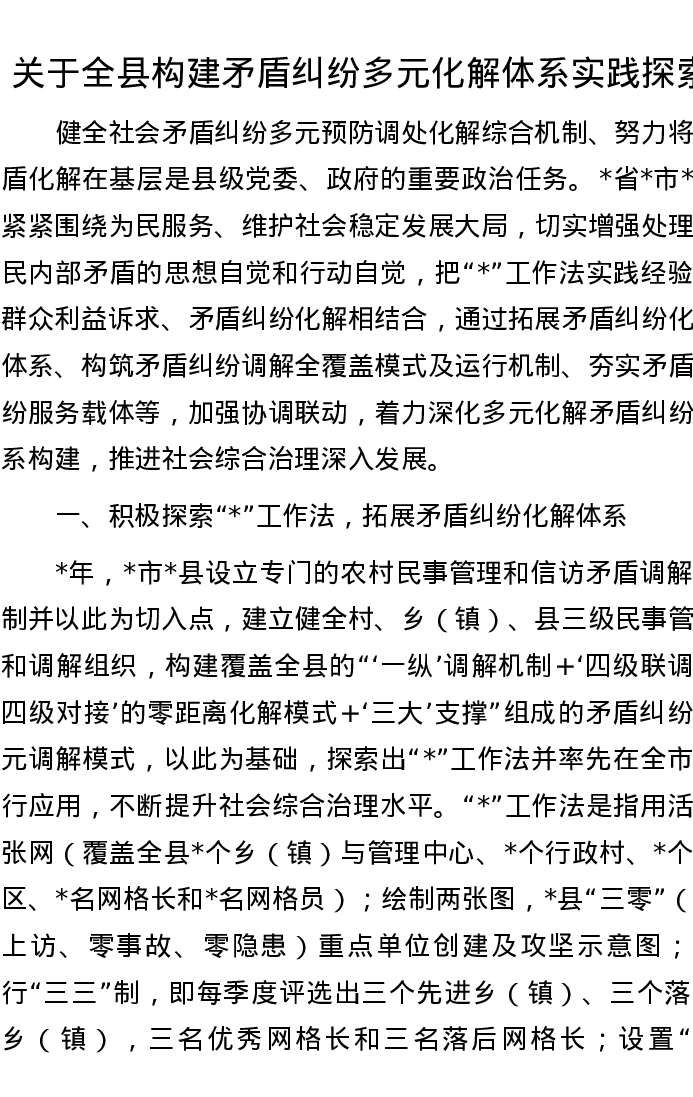关于全县构建矛盾纠纷多元化解体系实践探索