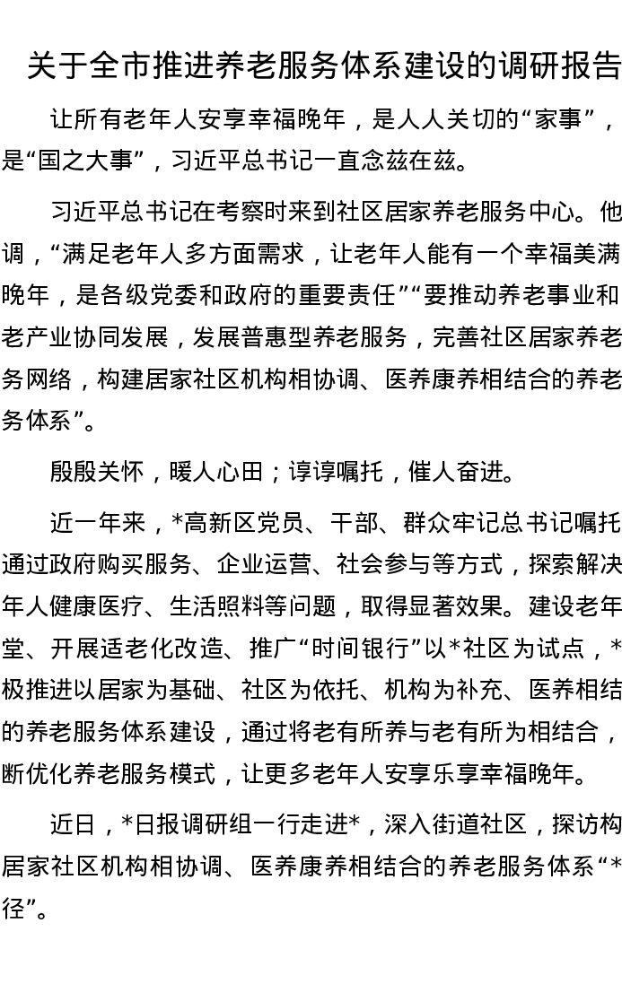 关于全市推进养老服务体系建设的调研报告