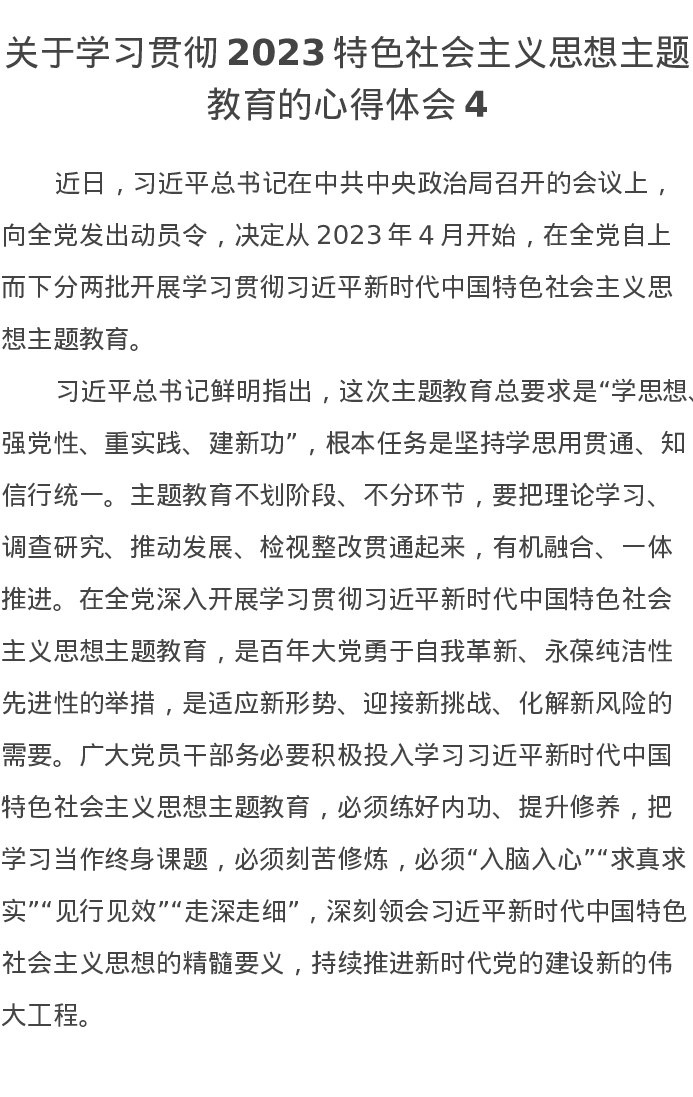 关于学习贯彻2023特色社会主义思想主题教育的心得体会4