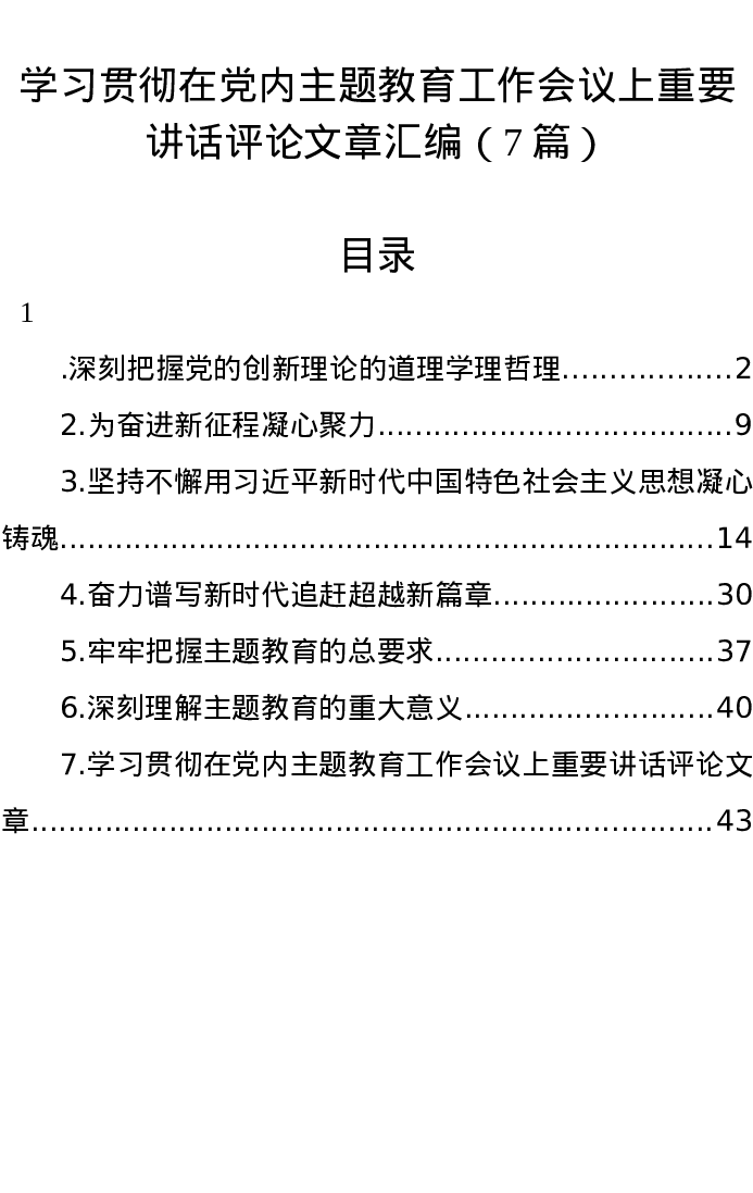 汇编:学习贯彻在党内主题教育工作会议上重要讲话评论文章7篇