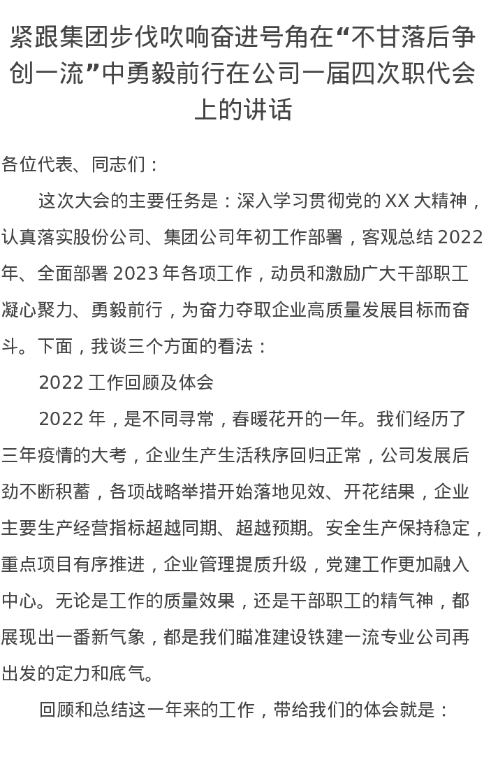 在公司一届四次职代会上的讲话