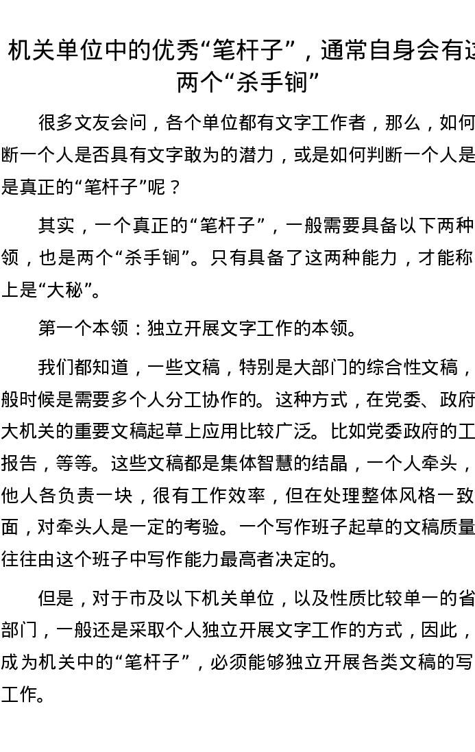 机关单位中的优秀“笔杆子”,通常自身会有这两个“杀手锏”