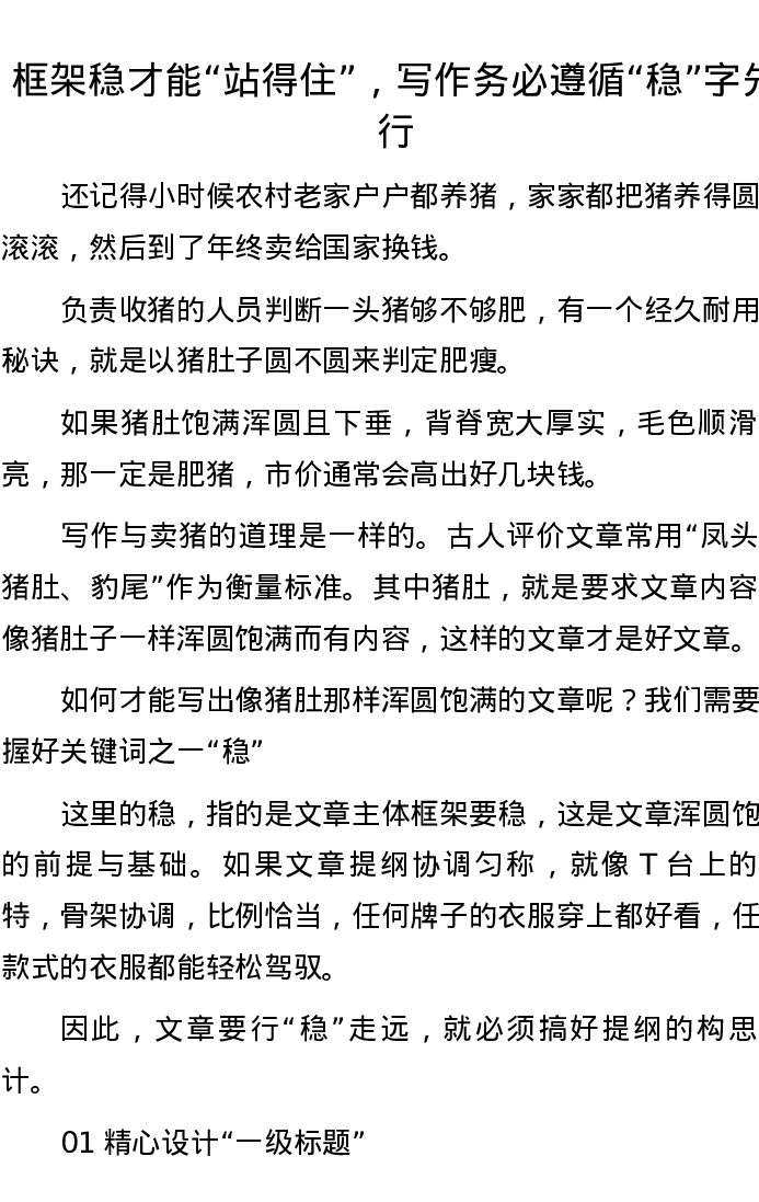 框架稳才能“站得住”,写作务必遵循“稳”字先行