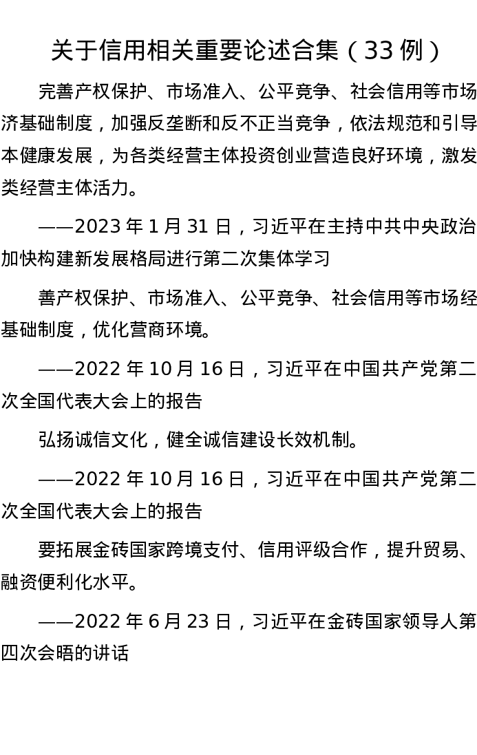 关于信用相关重要论述合集(33例)