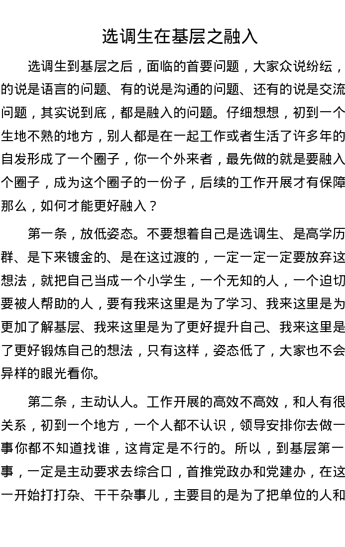 选调生在基层之融入