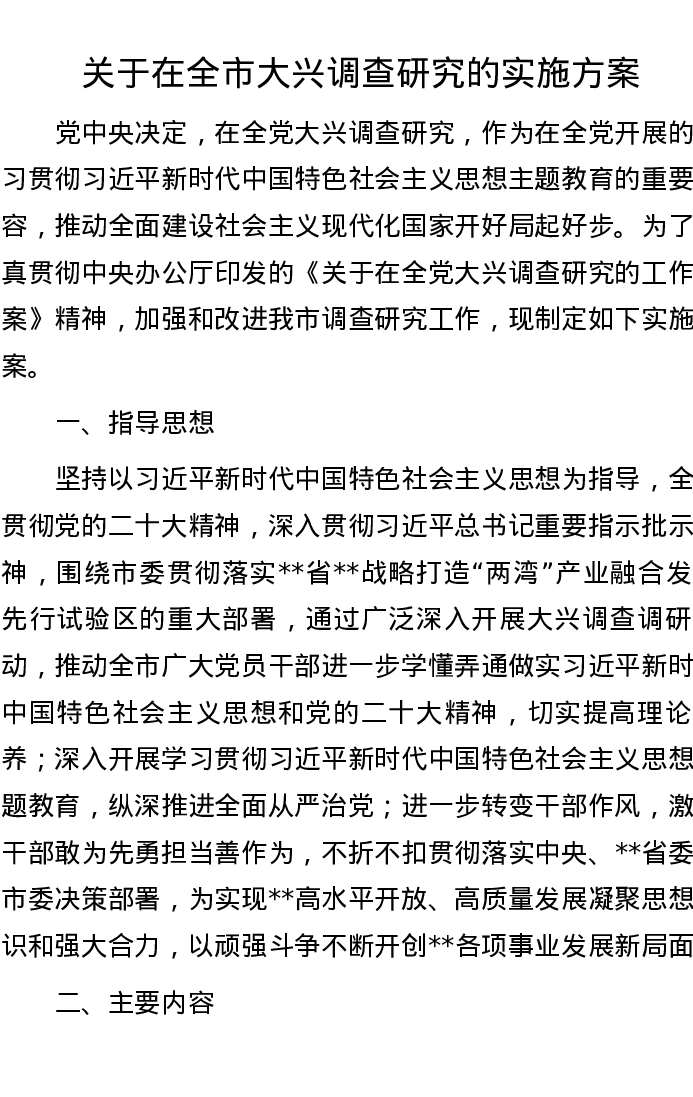 关于在全市大兴调查研究的实施方案