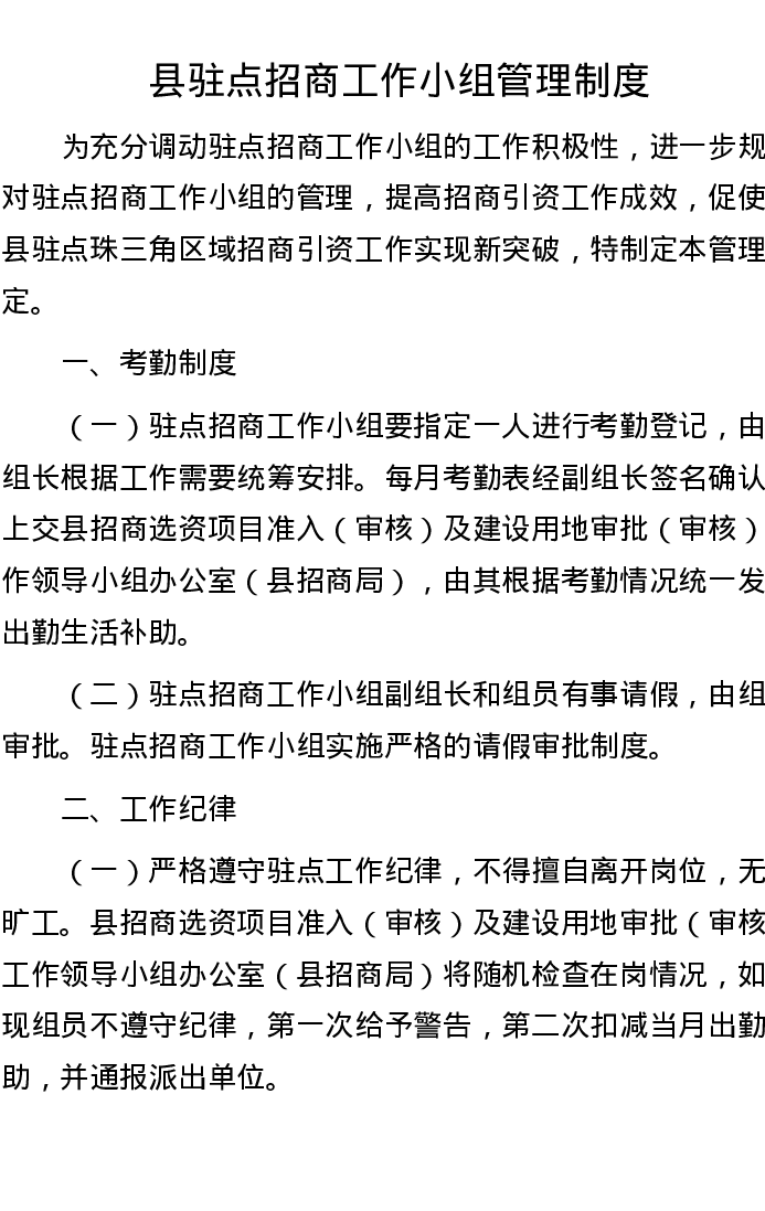 县驻点招商工作小组管理制度