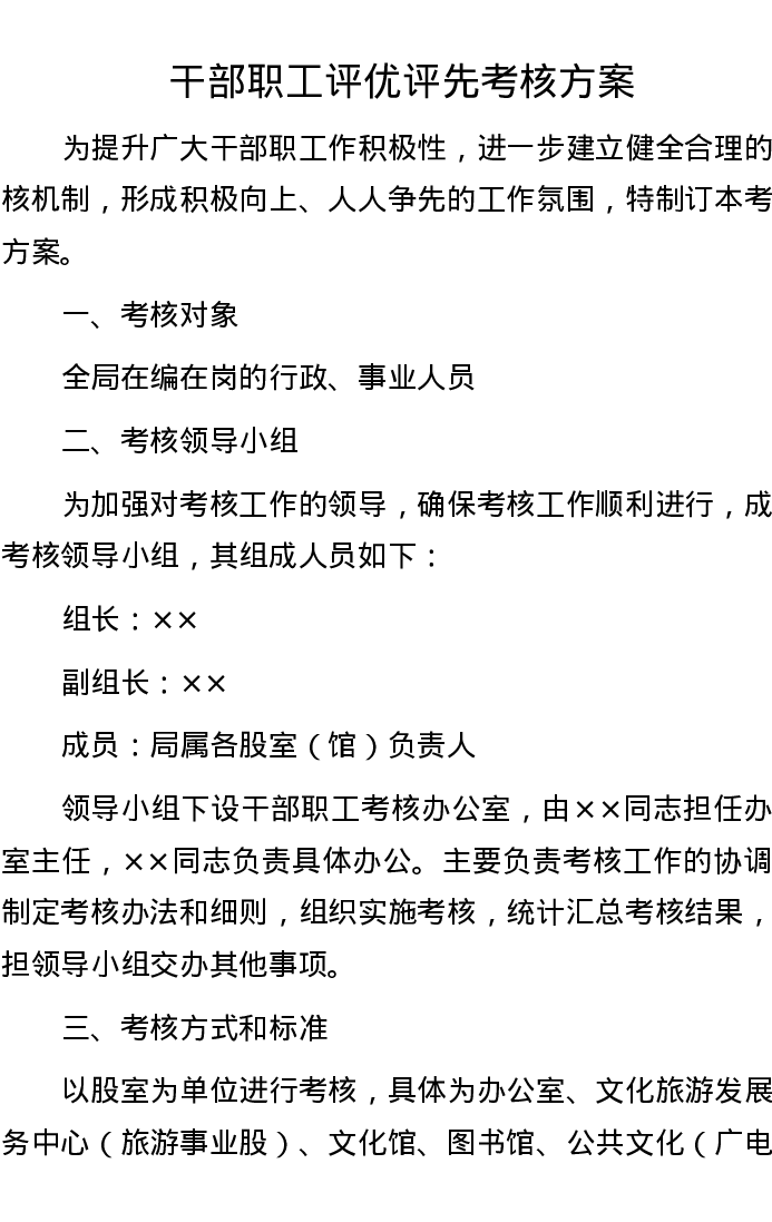 干部职工评优评先考核方案