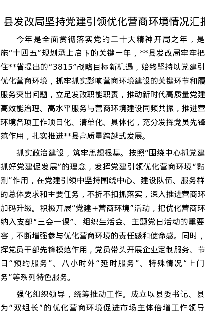 县发改局坚持党建引领优化营商环境情况汇报