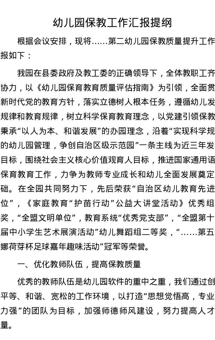 幼儿园保教工作汇报提纲