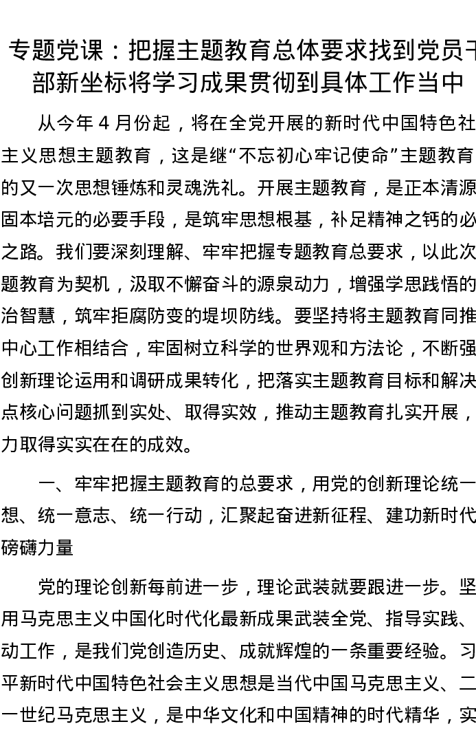 专题党课:把握主题教育总体要求 找到党员干部新坐标 将学习成果贯彻到具体工作当中