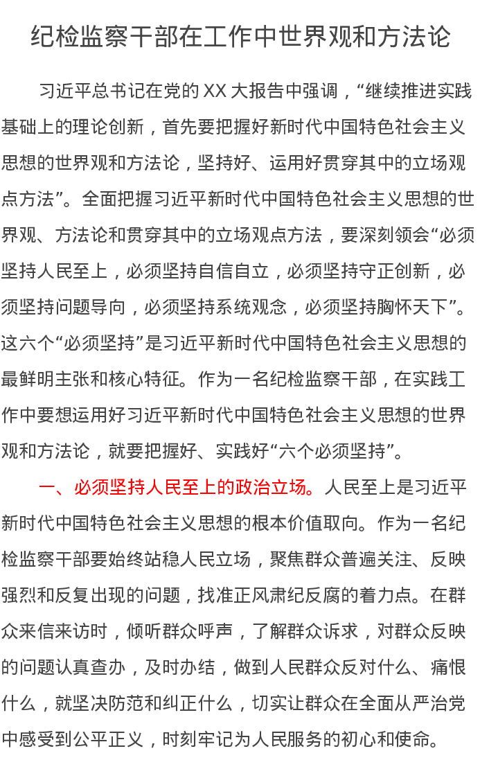 研讨发言:纪检监察干部在工作中世界观和方法论
