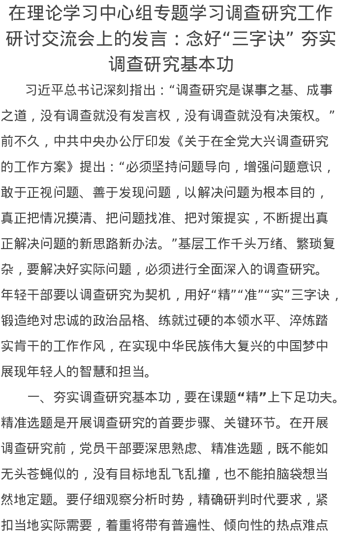 在理论学习中心组发言念好三字诀夯实调查研究基本功
