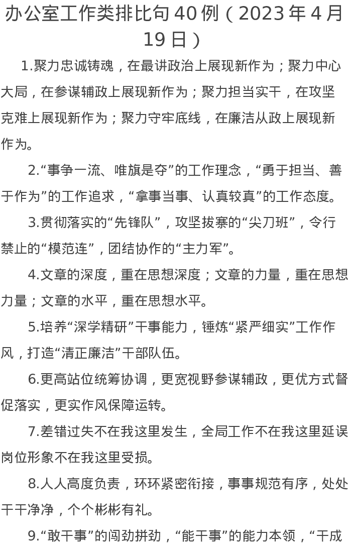 办公室工作类排比句40例(2023年4月19日)