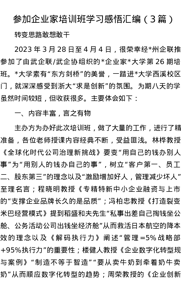 参加企业家培训班学习感悟汇编(3篇)
