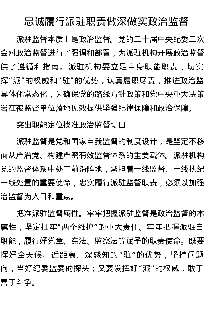 忠诚履行派驻职责做深做实政治监督