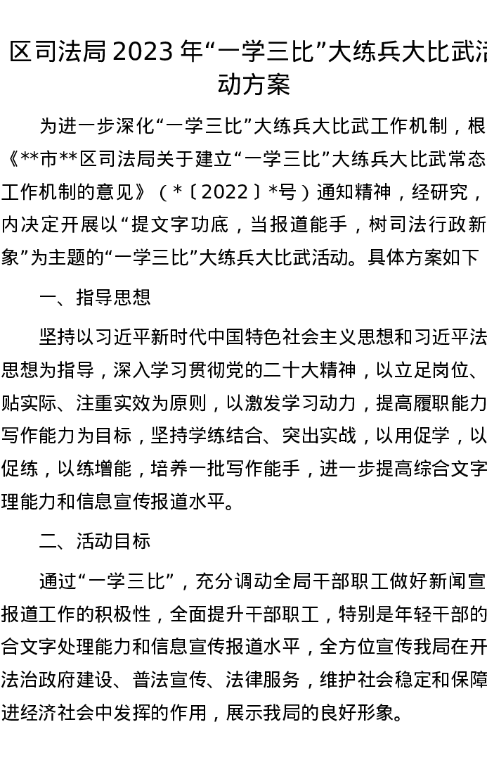 区司法局2023年“一学三比”大练兵大比武活动方案
