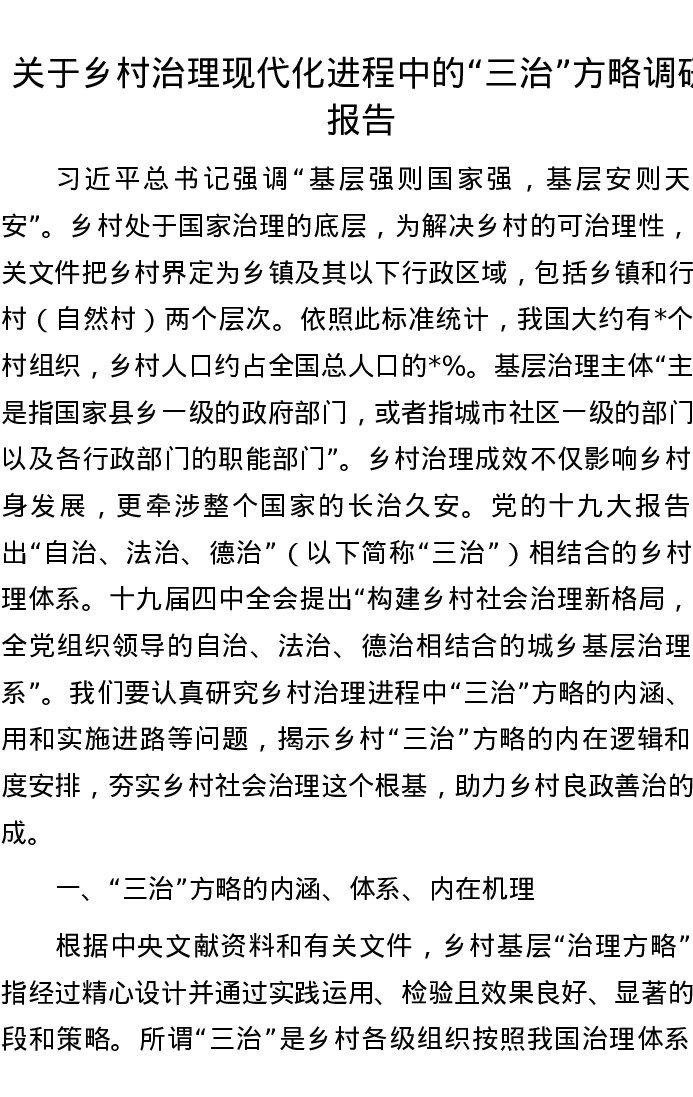 关于乡村治理现代化进程中的“三治”方略调研报告
