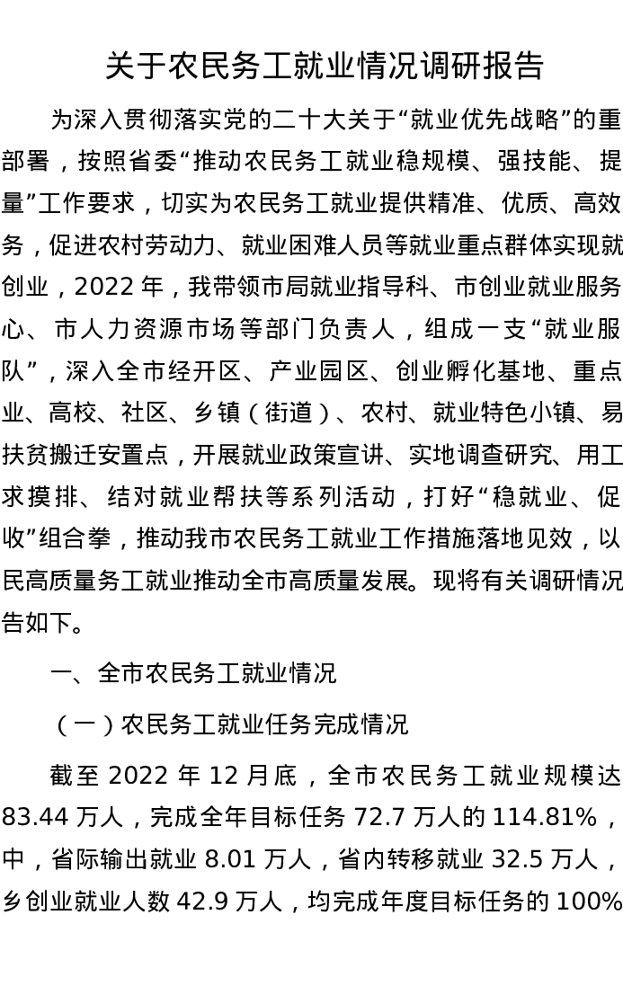 关于农民务工就业情况调研报告