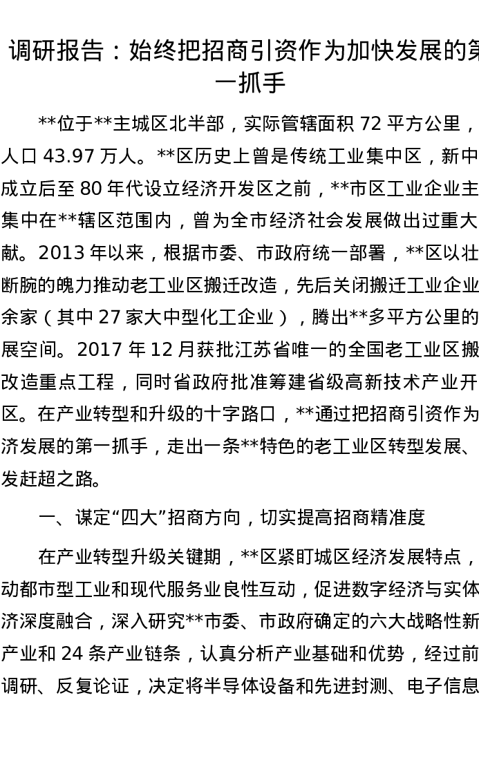 调研报告:始终把招商引资作为加快发展的第一抓手