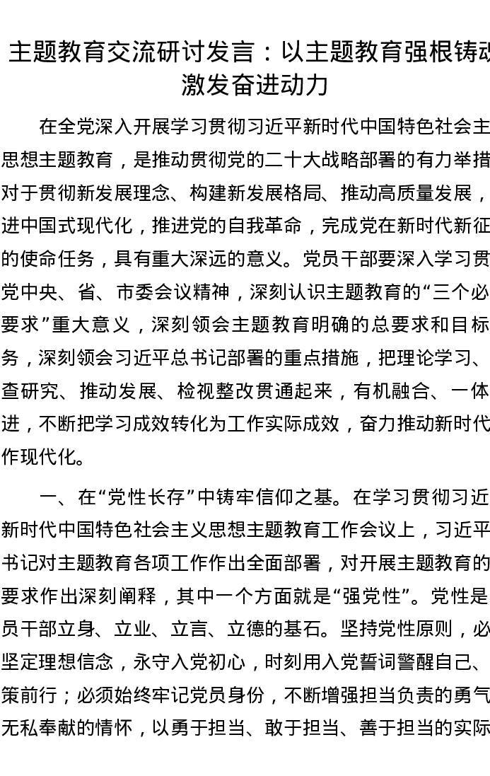 主题教育交流研讨发言:以主题教育强根铸魂激发奋进动力