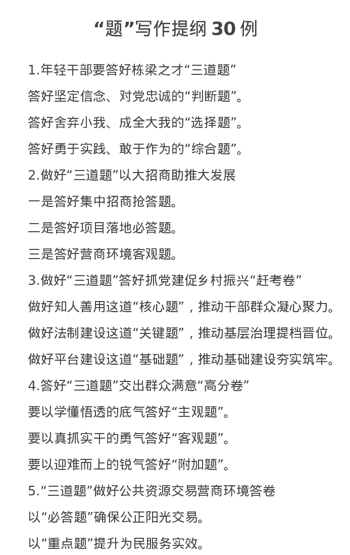 “题”写作提纲30例