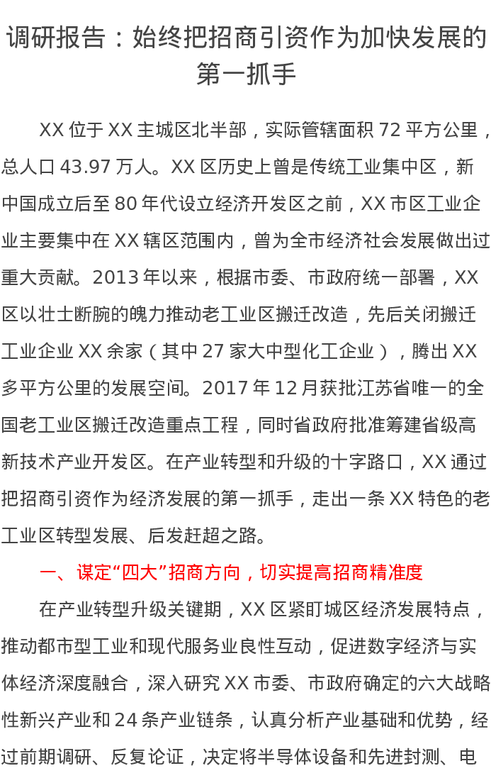 调研报告:始终把招商引资作为加快发展的第一抓手