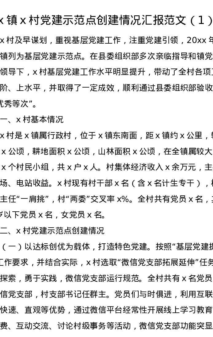 汇编:基层党建示范点创建工作汇报3篇(总结报告,村级、单位)