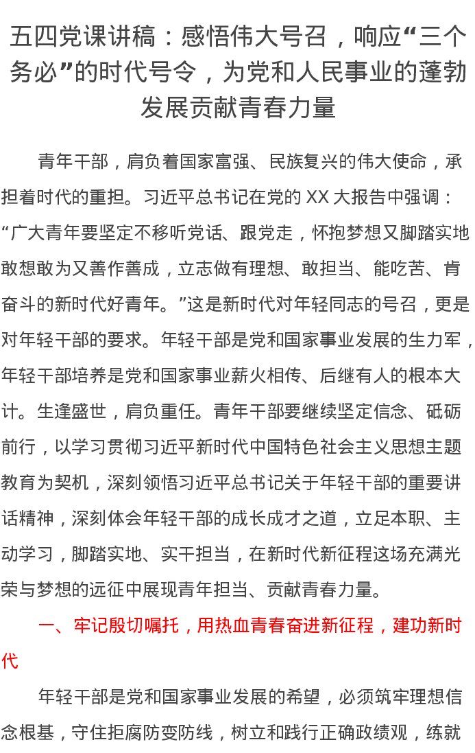 五四党课讲稿:感悟伟大号召,响应“三个务必”的时代号令,为党和人民事业的蓬勃发展贡献青春力量