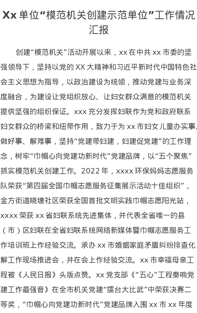 Xx单位“模范机关创建示范单位”工作情况汇报