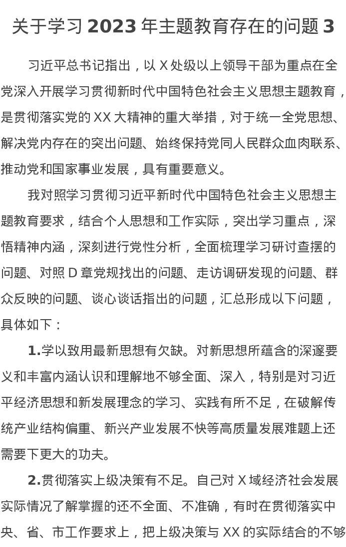 关于学习2023年主题教育存在的问题3(特色社会主义思想)