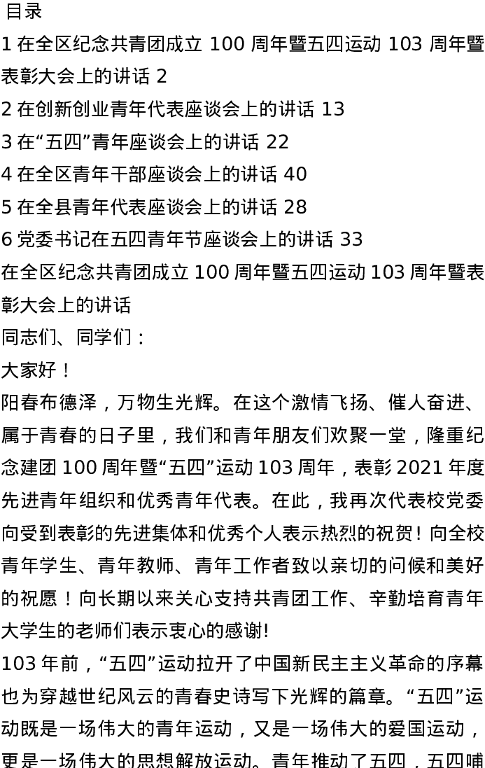 汇编:“五四”青年座谈会讲话汇编