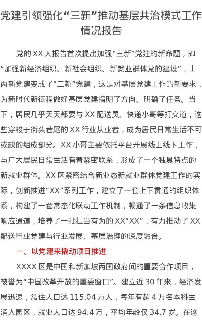党建引领强化“三新”推动基层共治模式工作情况报告