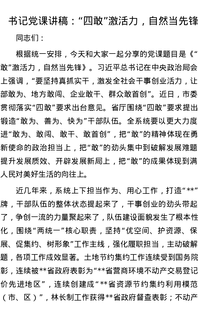书记党课讲稿:“四敢”激活力,自然当先锋