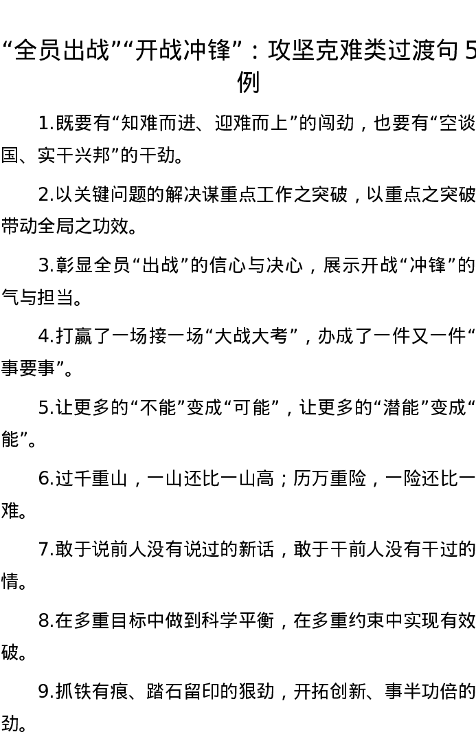 “全员出战”“开战冲锋”:攻坚克难类过渡句50例