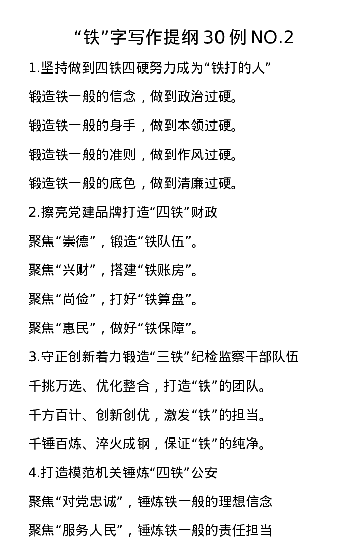 “铁”字写作提纲30例NO