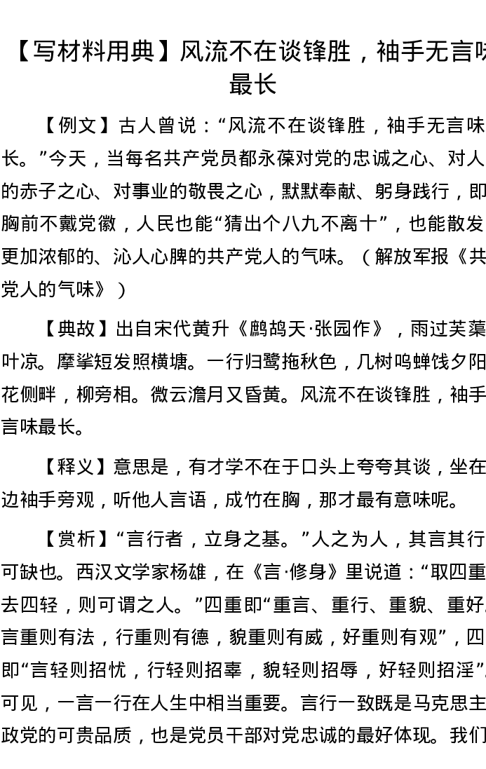 【写材料用典】风流不在谈锋胜,袖手无言味最长